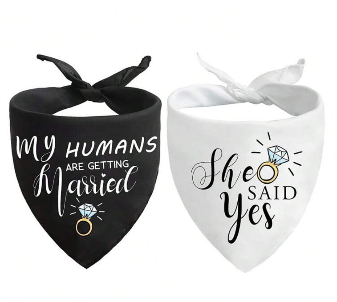 Get your pup ready for the big day with our amazing Dog Bandana! Perfect for the engagement or wedding ceremony. Made from soft and comfortable materials, this triangle-shaped bandana is available in two beautiful designs and is a universal size for all dogs.
