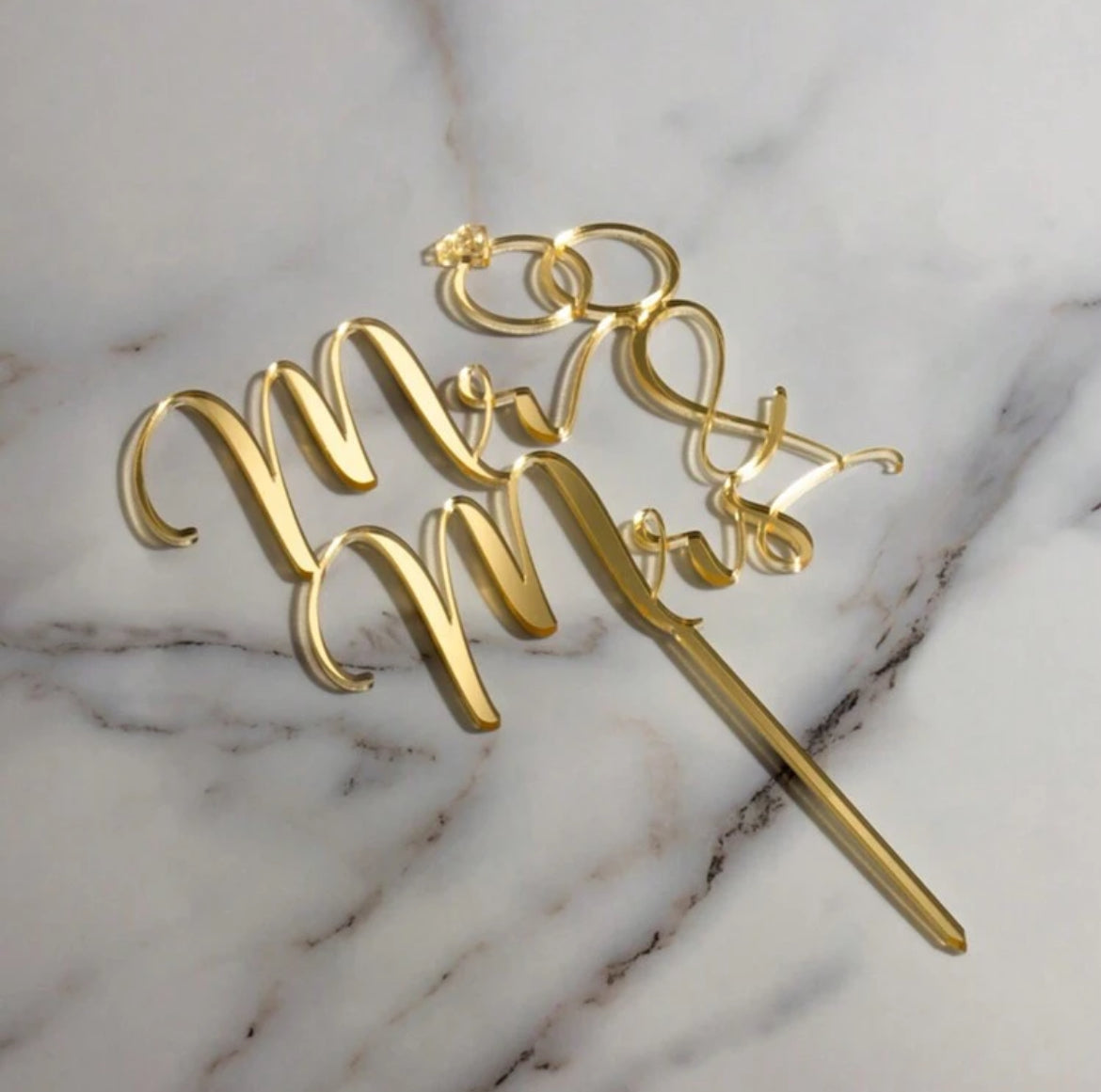 Celebrate in style with the Mr & Mrs Cake Topper! Made of shiny gold plastic, this topper adds the perfect touch to any wedding cake. No need to worry about it being too heavy - it's lightweight and won't weigh down your cake. (Seriously, this is a must-have for any reception.)