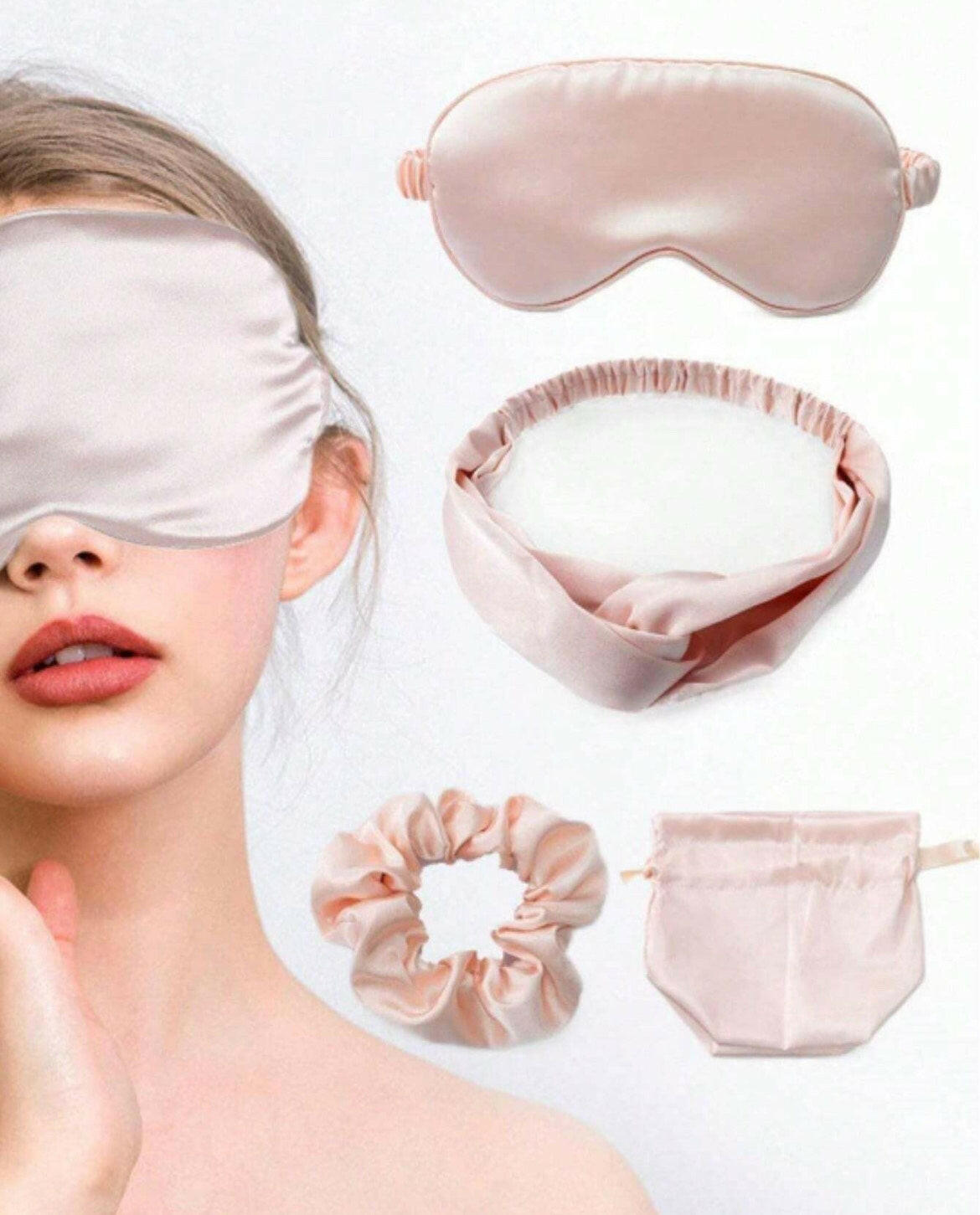 Pink Sleeping Mask Set 4Pcs: Eye mask, headband, scrunchie and a bag